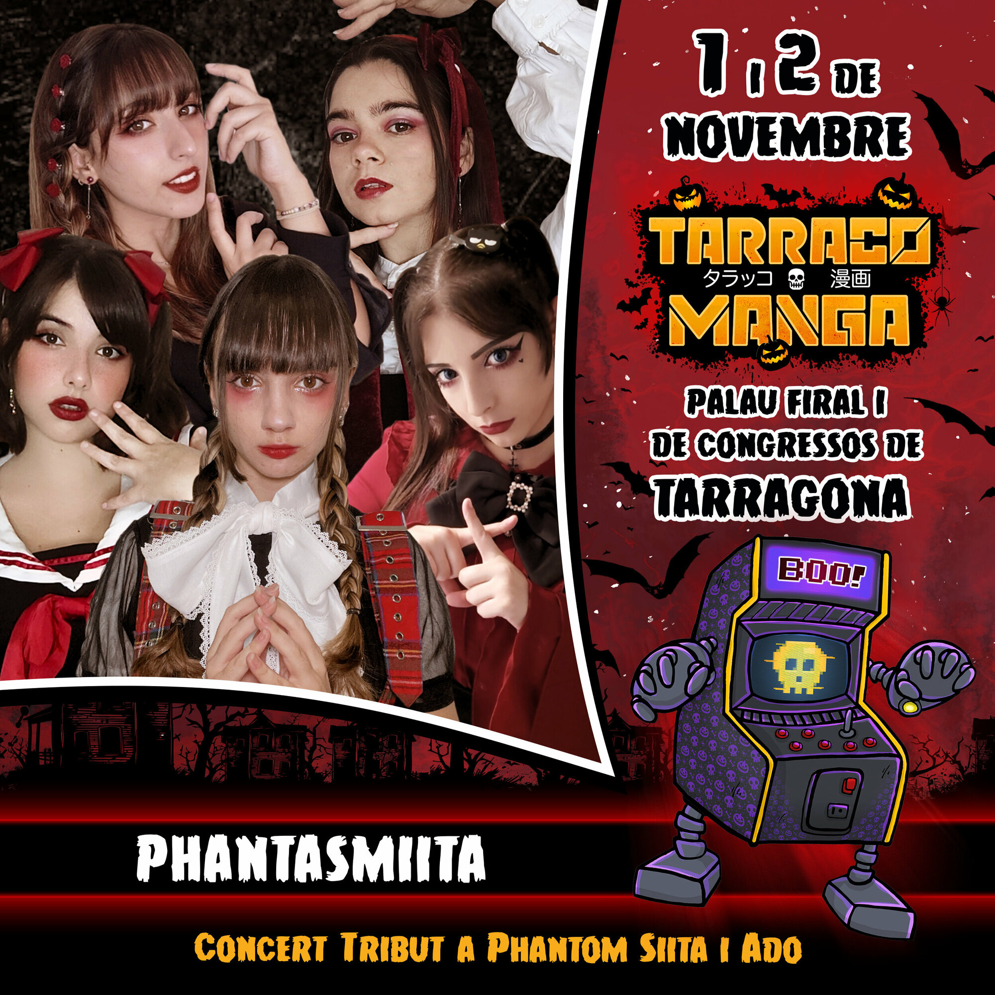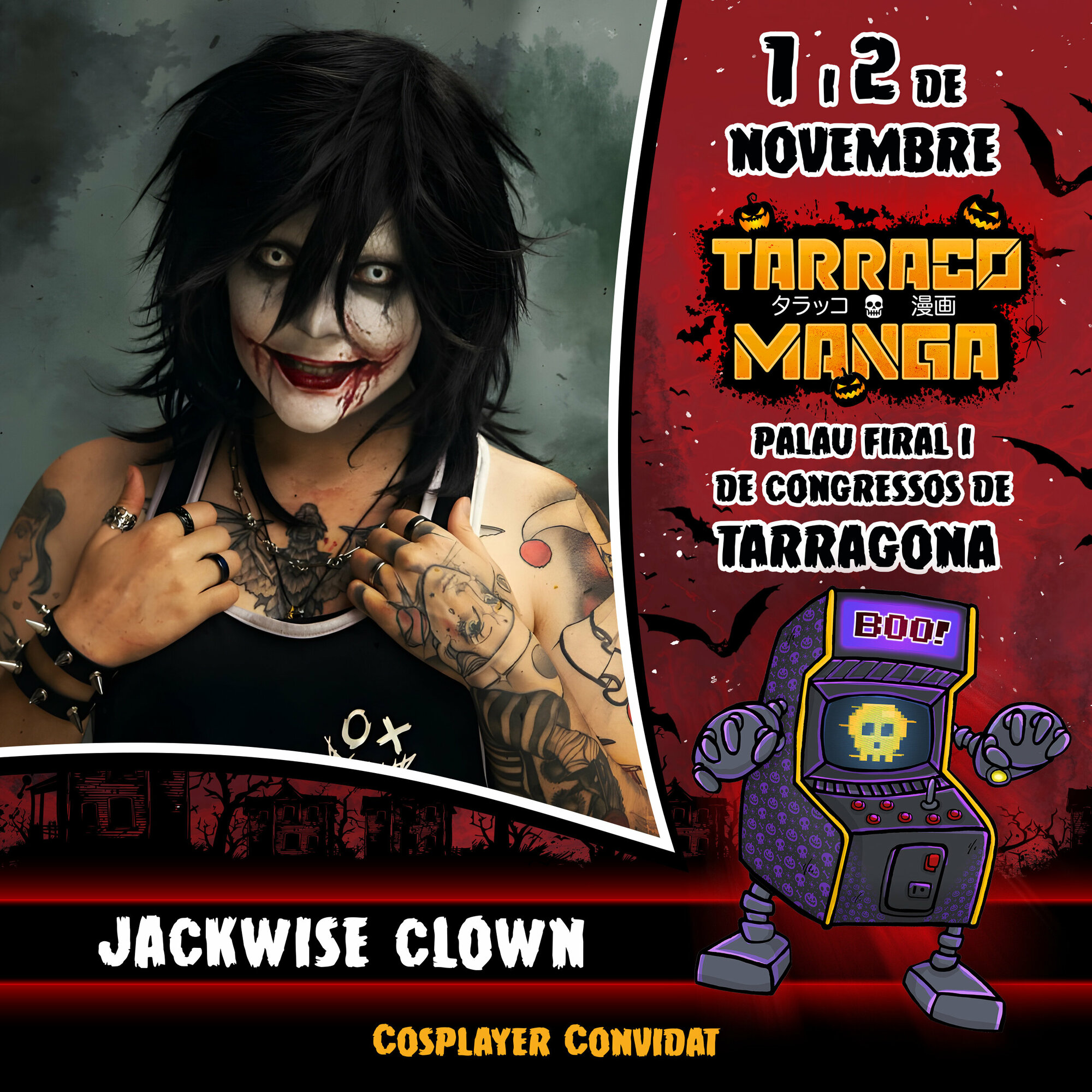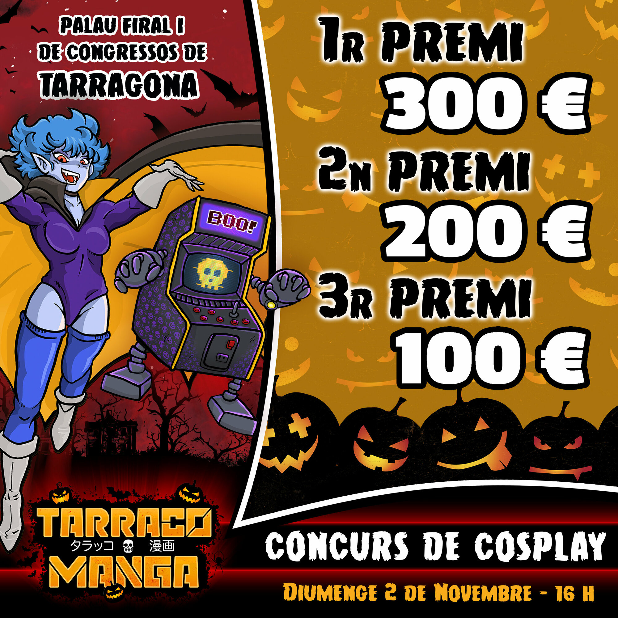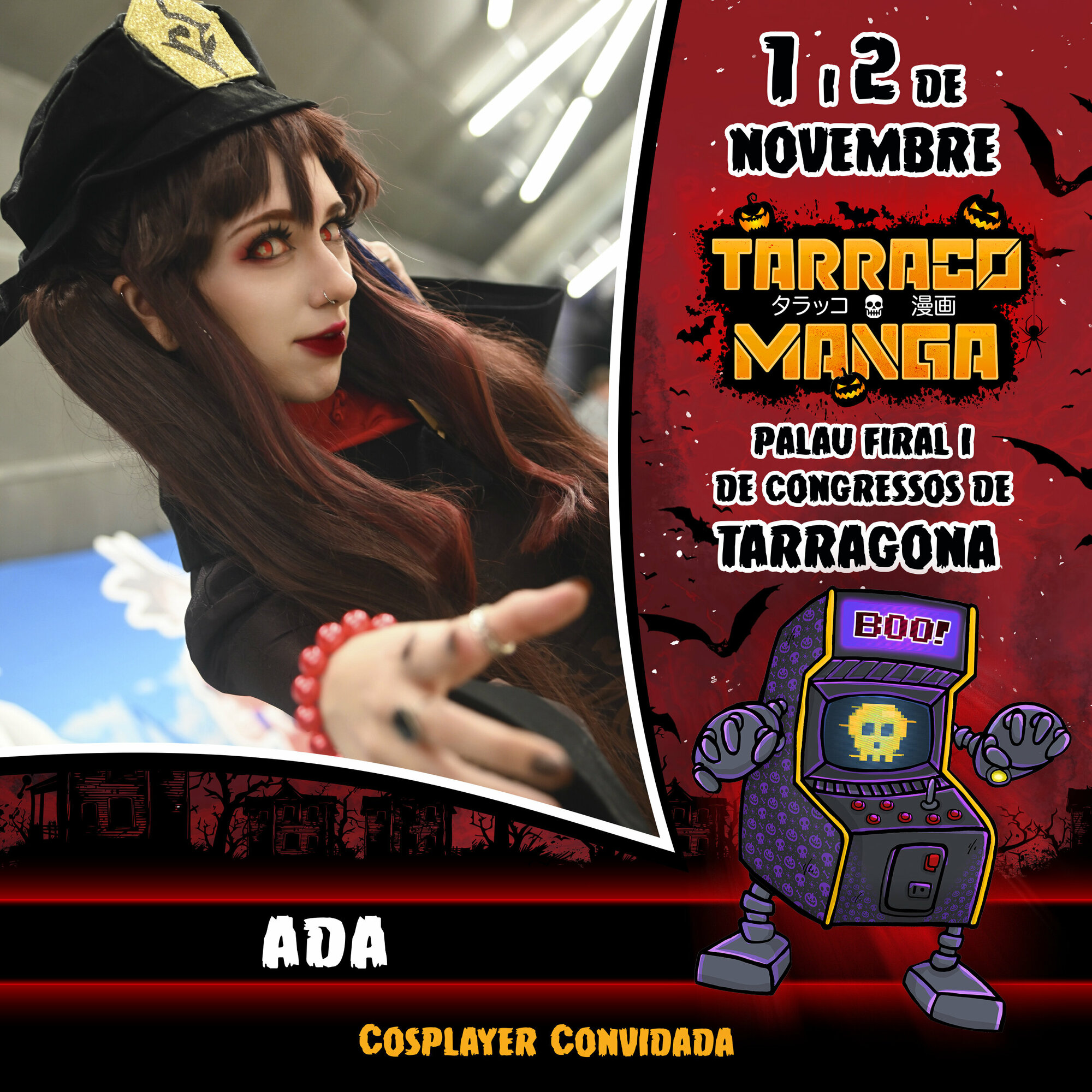 Torna l’esdeveniment més potent de manga, anime i videojocs, al Palau Firal i de Congressos de Tarragona. Reserva’t el cap de setmana de l’1 i 2 de novembre i diverteix-te com mai. A més, aquest any, edició especial Halloween!!! Prepara el teu cosplay més terrorífic i gaudeix de dos dies inoblidables amb els millors cosplayers professionals, concursos, tornejos, arcades, gaming i retrogaming, tallers, exposicions, actrius i actors de doblatge, artistes i artesans/es, botigues, food trucks, zona tattoo... i molt més!
