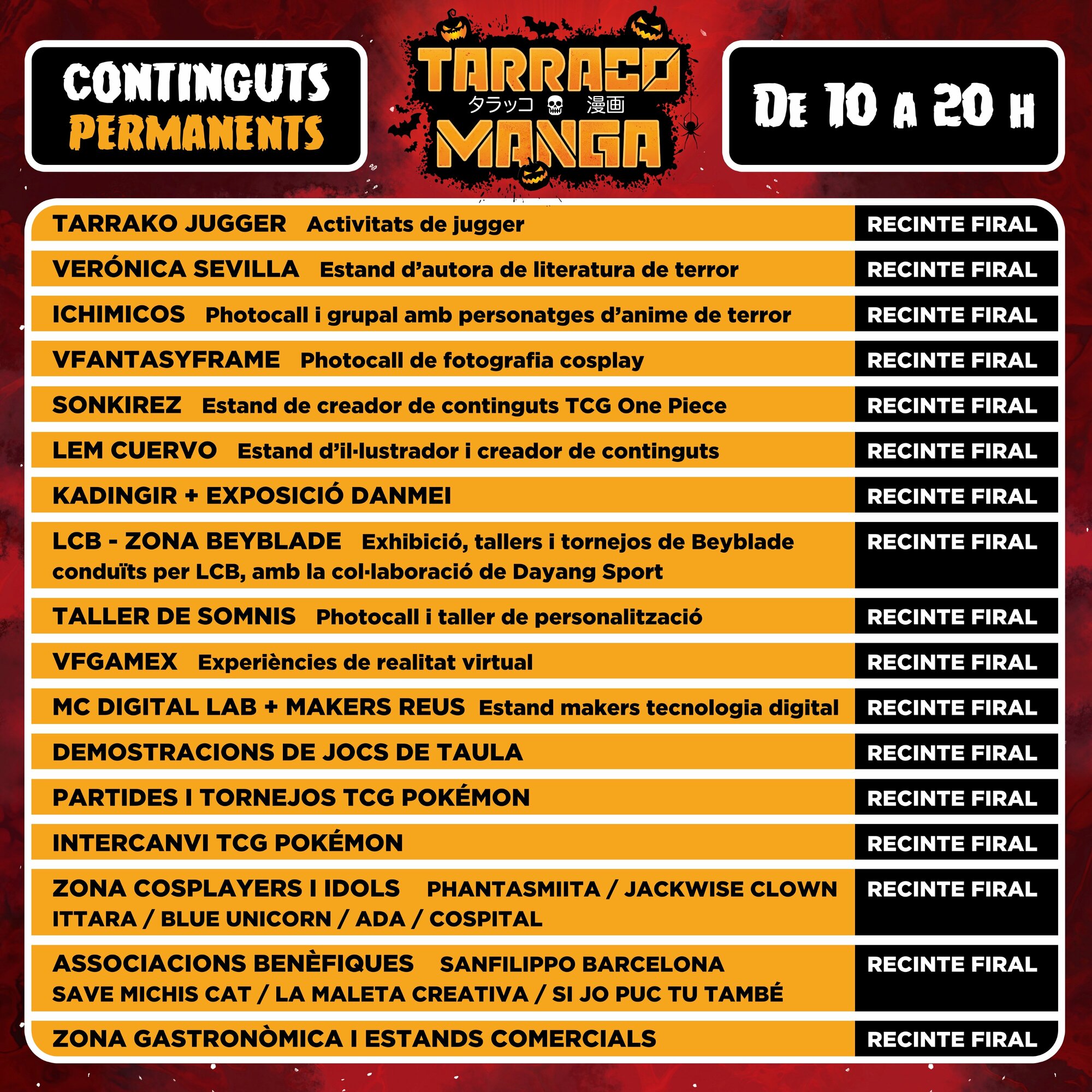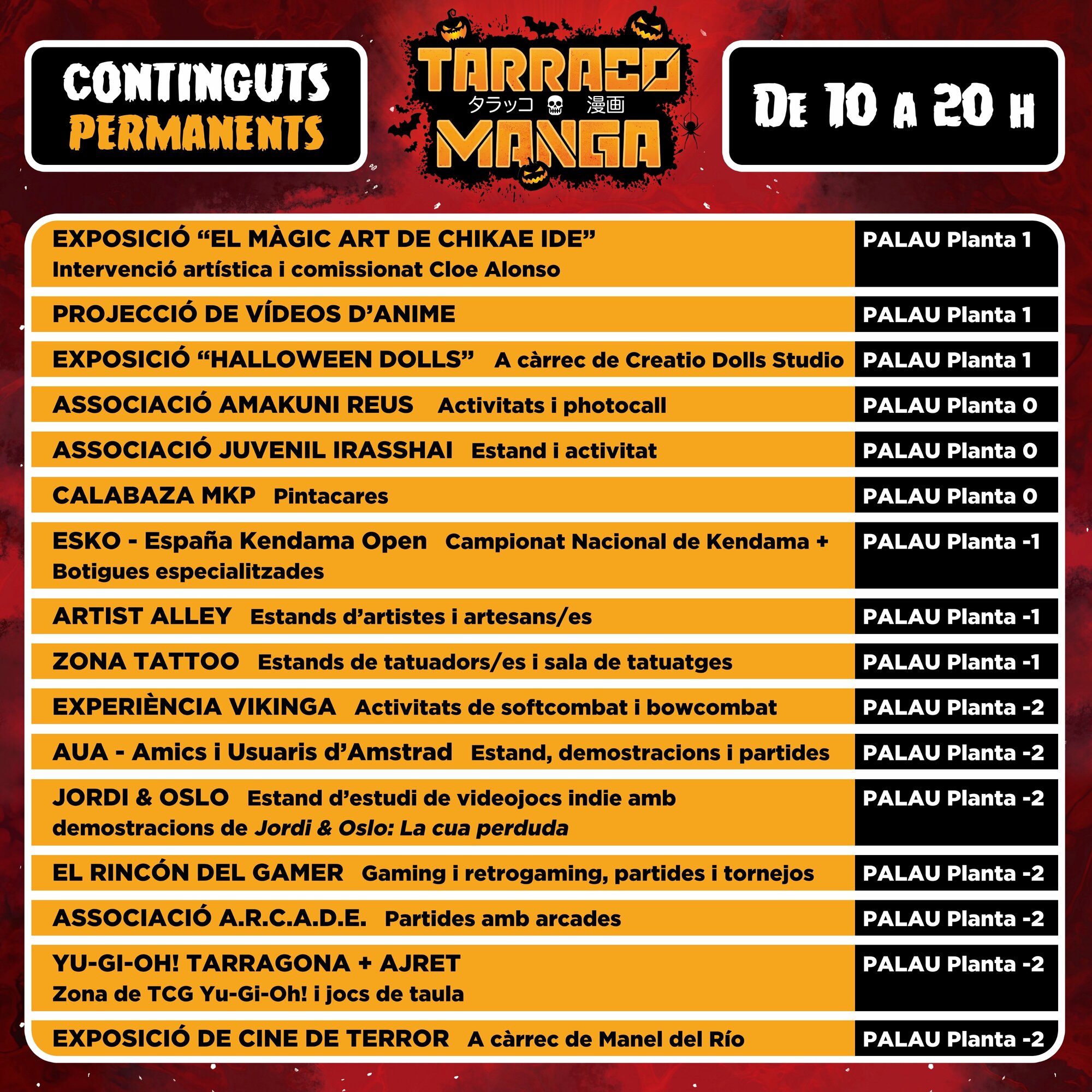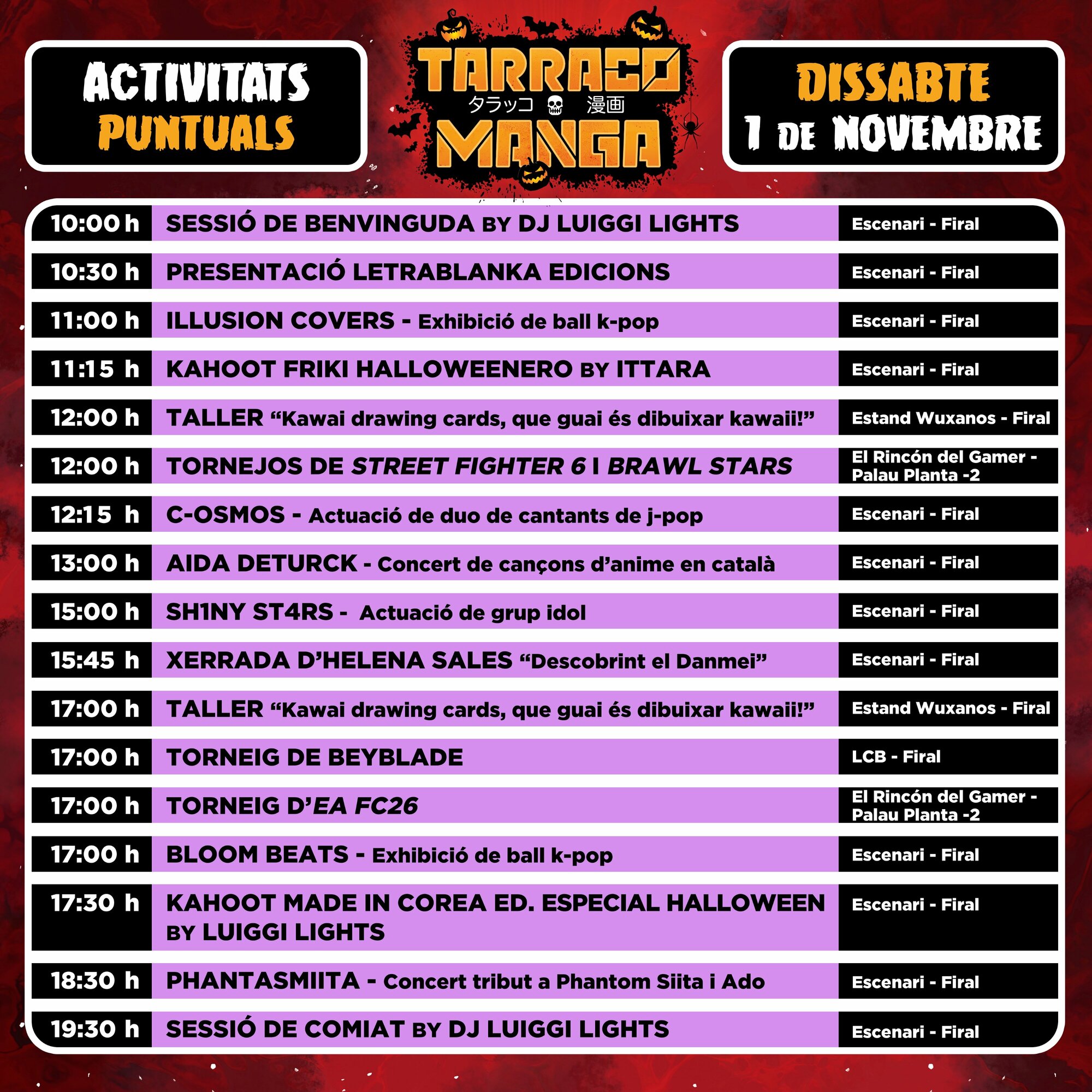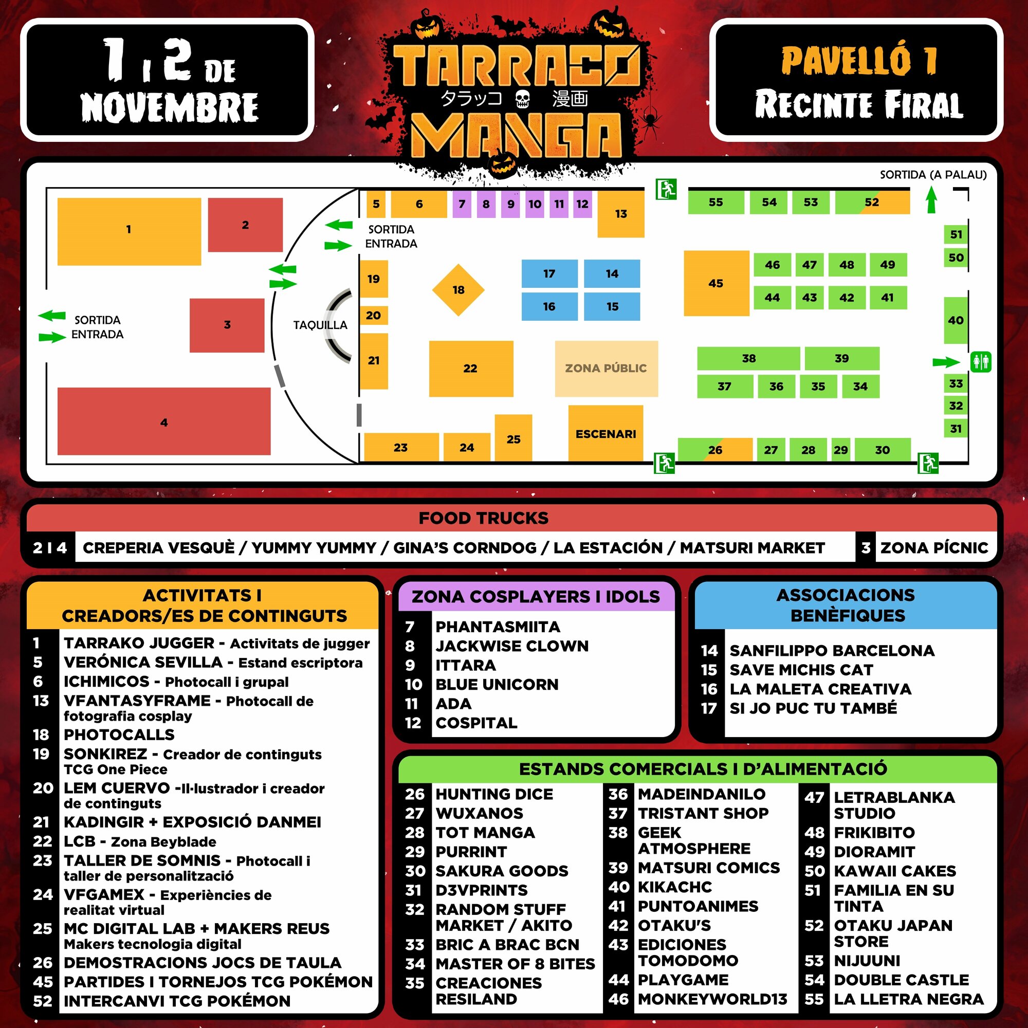 Torna l’esdeveniment més potent de manga, anime i videojocs, al Palau Firal i de Congressos de Tarragona. Reserva’t el cap de setmana de l’1 i 2 de novembre i diverteix-te com mai. A més, aquest any, edició especial Halloween!!! Prepara el teu cosplay més terrorífic i gaudeix de dos dies inoblidables amb els millors cosplayers professionals, concursos, tornejos, arcades, gaming i retrogaming, tallers, exposicions, actrius i actors de doblatge, artistes i artesans/es, botigues, food trucks, zona tattoo... i molt més!