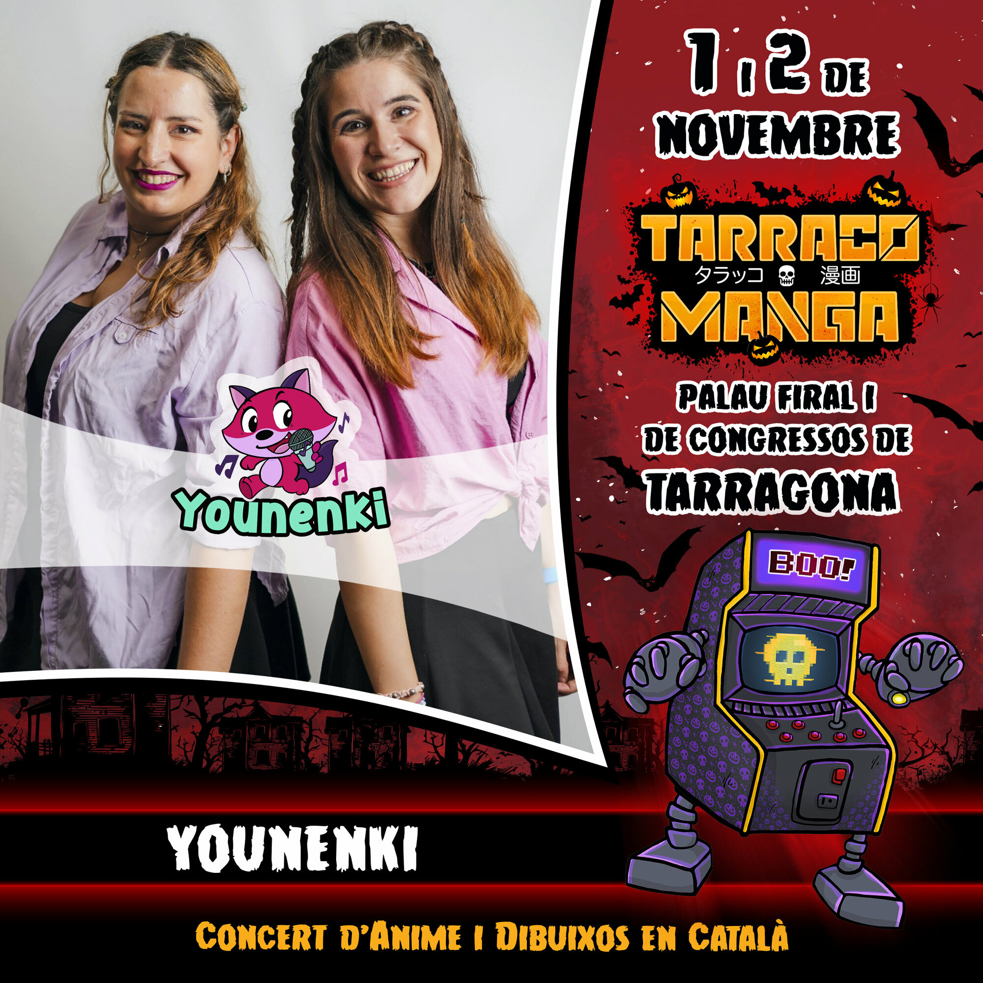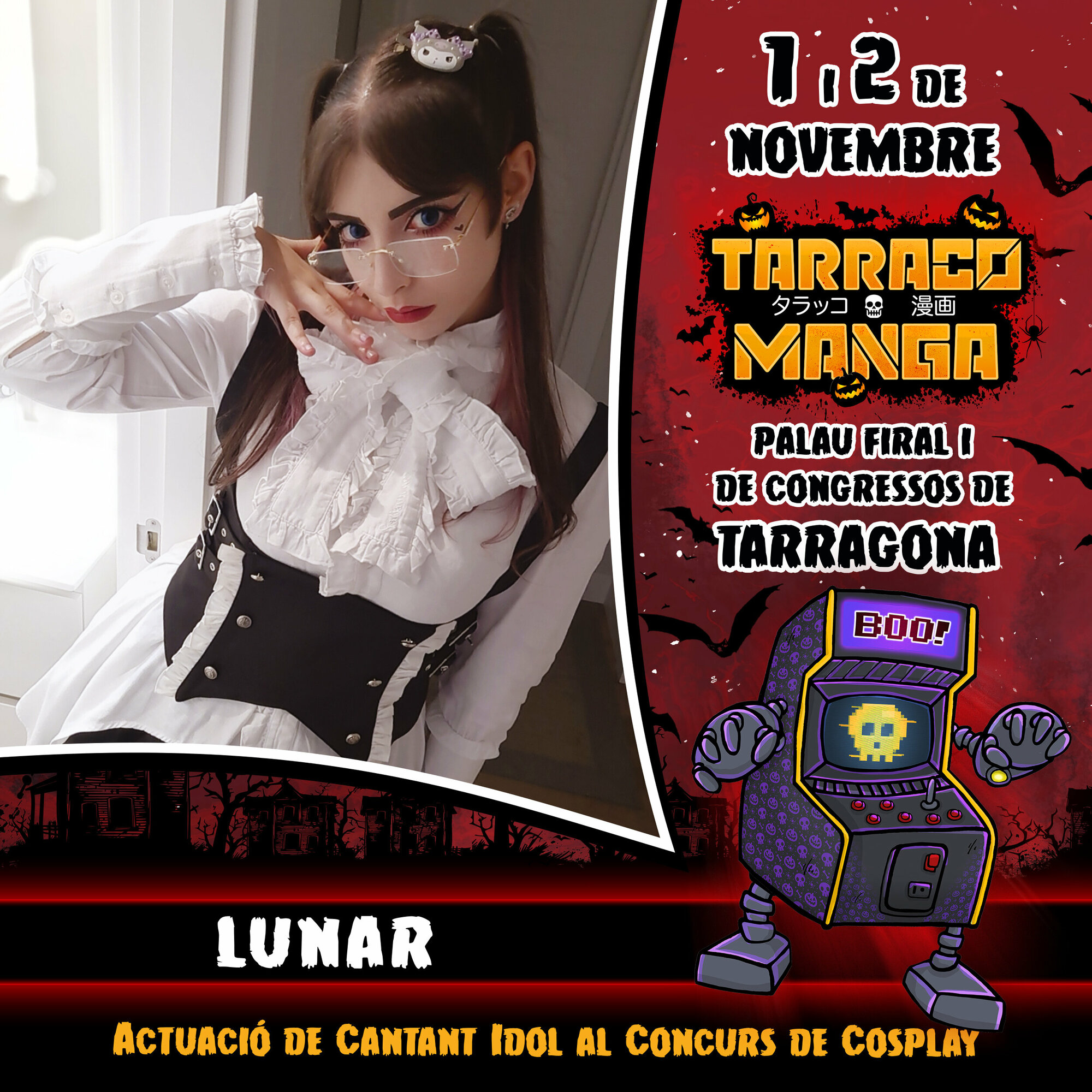 Vuelve el evento más potente de manga, anime y videojuegos, en el Palau Firal i de Congressos de Tarragona. Resérvate el fin de semana del 1 y 2 de noviembre y diviértete como nunca. Además, este año, ¡¡¡edición especial Halloween!!! Prepara tu cosplay más terrorífico y disfruta de dos días inolvidables con los mejores cosplayers profesionales, concursos, torneos, arcades, gaming y retrogaming, talleres, exposiciones, actrices y actores de doblaje, artistas y artesanos/as, tiendas, food trucks, zona tattoo... ¡y mucho más!